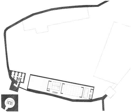 Im Kellergeschoss befinden sich die Toiletten für Besucher und eine zusätzliche Besuchergarderobe. Seitlich von der Technik des großen Saales sind Stuhllager vorgesehen. Am westlichen Ende liegt der Lagerbereich. >> |
