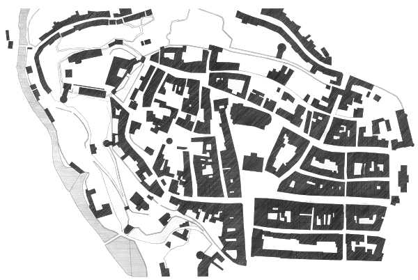 In seiner Achsialität und Weiträumigkeit bildet der Hof der Ortenburg einen Gegensatz zur mittelalterlichen Stadtstruktur. Eine Ordnung, die leider seit der Zerstörung des Magazingebäudes 1945 nicht mehr deutlich lesbar ist. Der Neubau des Puppentheaters stellt sich dem Museum gegenüber. So wird die barocke Raumordnung wiederhergestellt. Das Schloss tritt wieder als Hauptgebäude in ein Spannungsverhältnis zu seinem kleinen Pendant. >> |